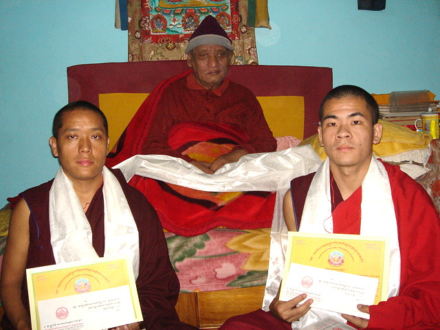 On the morning of 25th November 2009, an auspicious day of Tibetan Lunar year 2136, Ven. Thupten Lhundup and Ven. Jampa Tsuendu took their Ngagrampa Examinations in front of Khen Rinpoche Thutop Gonpo in Buddhist Tantra, Sutra and Sed-Gyued Rituals. Both passed successfully securing first division.